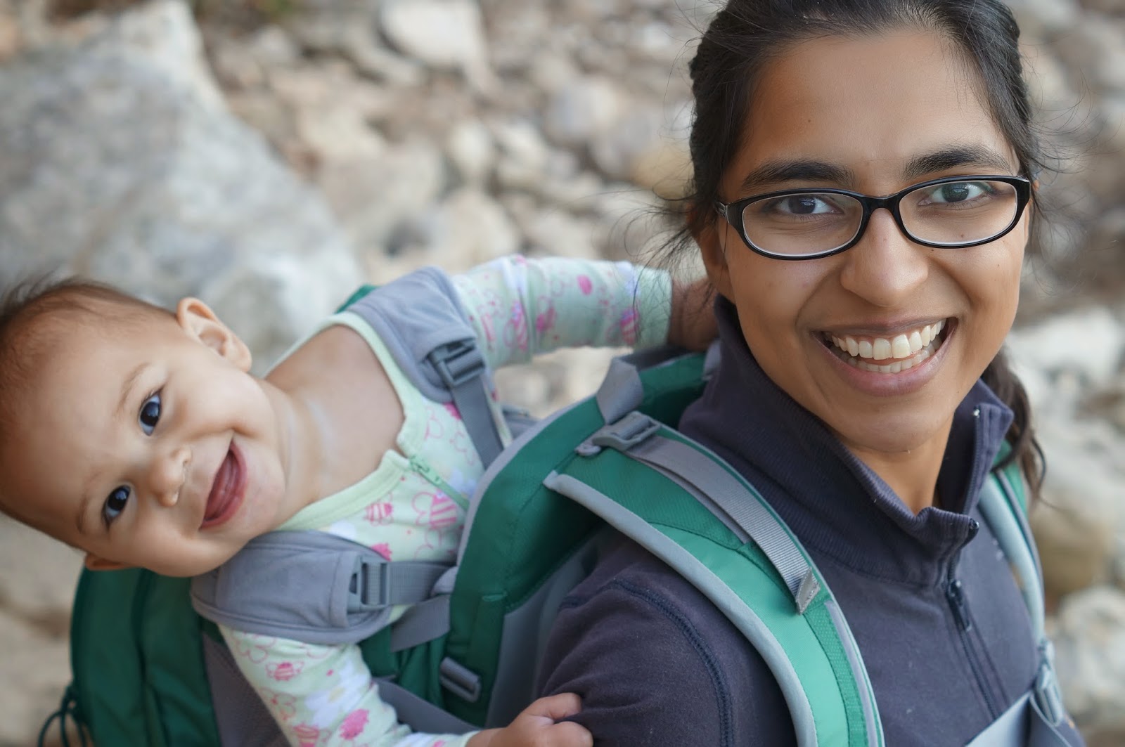 As the weather cooled, we were able to enjoy lots of fall activities with her. From hiking to pumpkin carving to dressing her up as an adorable monkey for Halloween, we had a blast. Ashni’s first trick-or-treating experience entailed her happily grabbing candy out of our neighbors’ hands as we went door to door. We didn’t let her eat any of it, but it was hard to stop her from chewing on the wrappers! Then in November, we celebrated my birthday, spent a lot of time outdoors, and on Thanksgiving morning we ran our first race with Ashni in a stroller. The five mile Turkey Trot was a success and we hope to make it a family tradition. We ended up rushing back to our house right afterwards to start cooking since we were hosting the big family dinner, but it all went without a hitch!